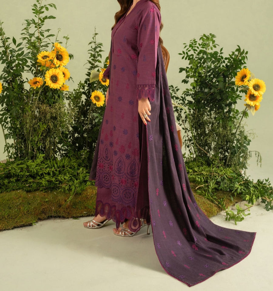 3Pc Khaddar Embroidered with Khaddar Shawl Plum AFP-A25-0011