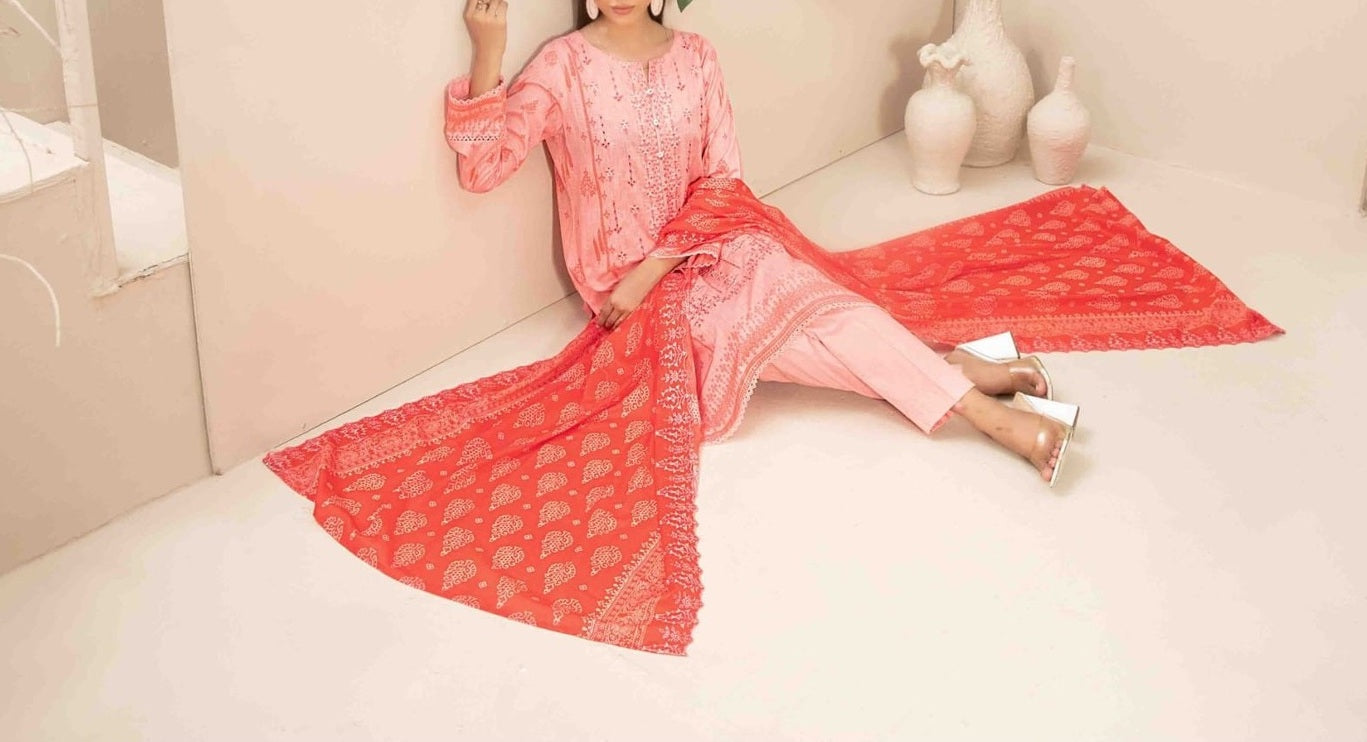 Digital embroidered dupatta with elegant cutwork border – a modern touch to classic style