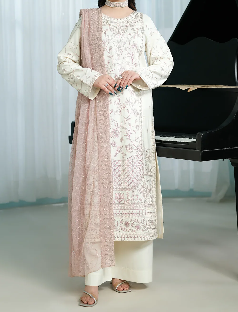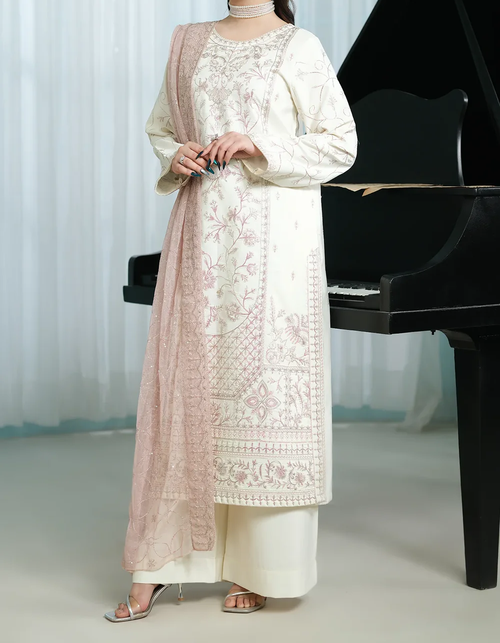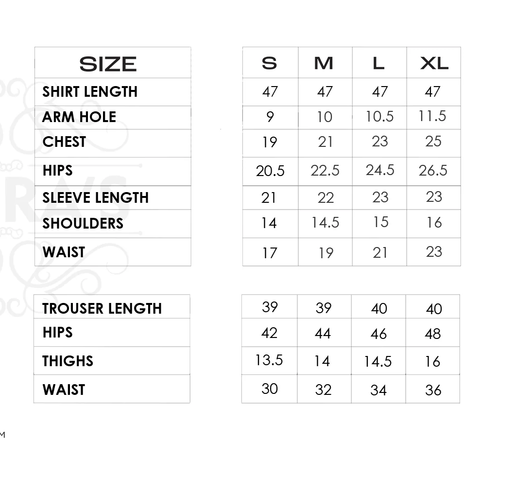ShirtThis shirt is made from Cambric Cotton fabric. It is beautifully fully embroidered,including on the arms, sleeves, and damanTrouserThis outfit...