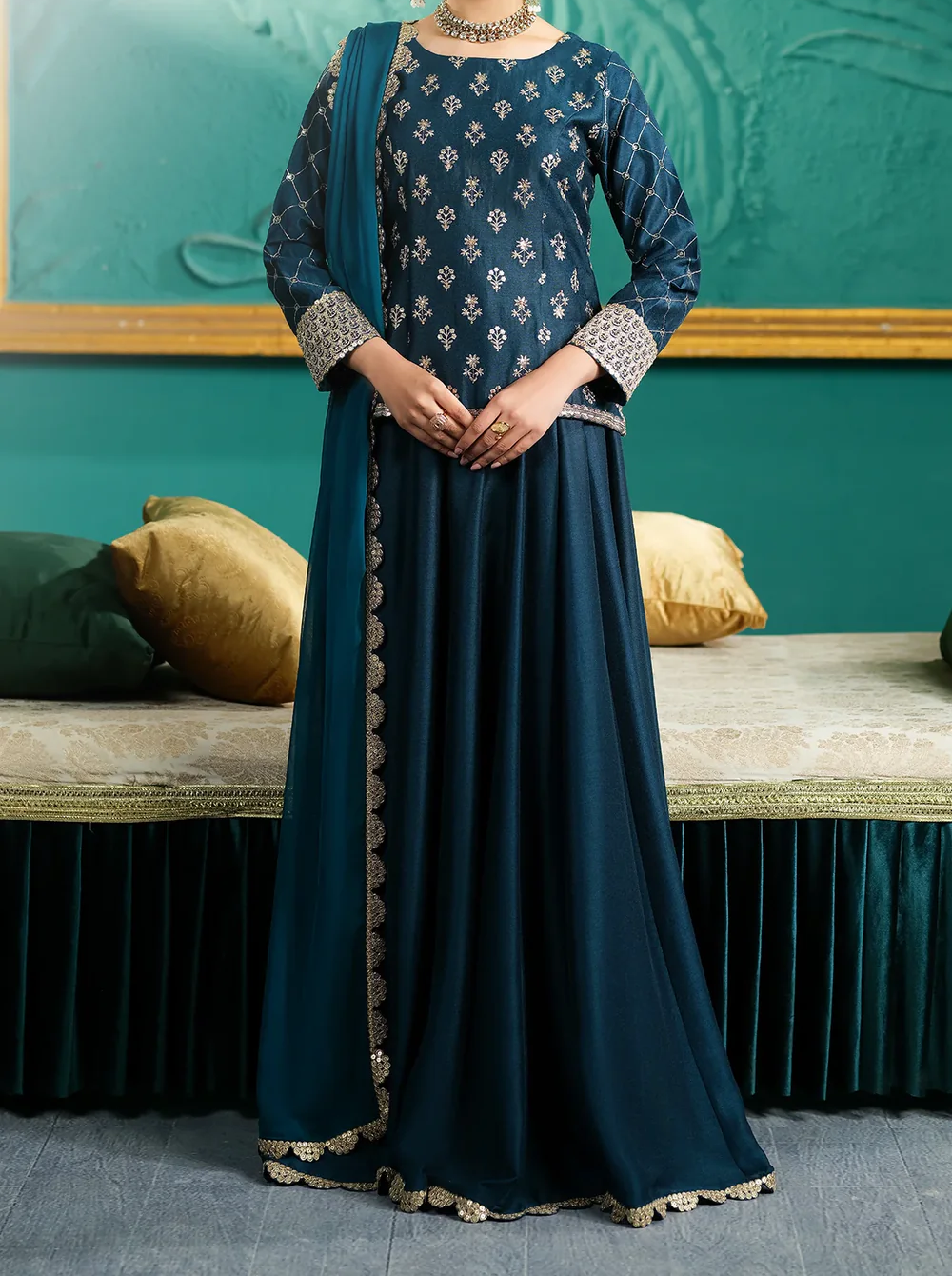ShirtThis shirt is made from Cambric Cotton fabric. It is beautifully fully sequenceembroidered, including on the arms, sleeves, and daman....