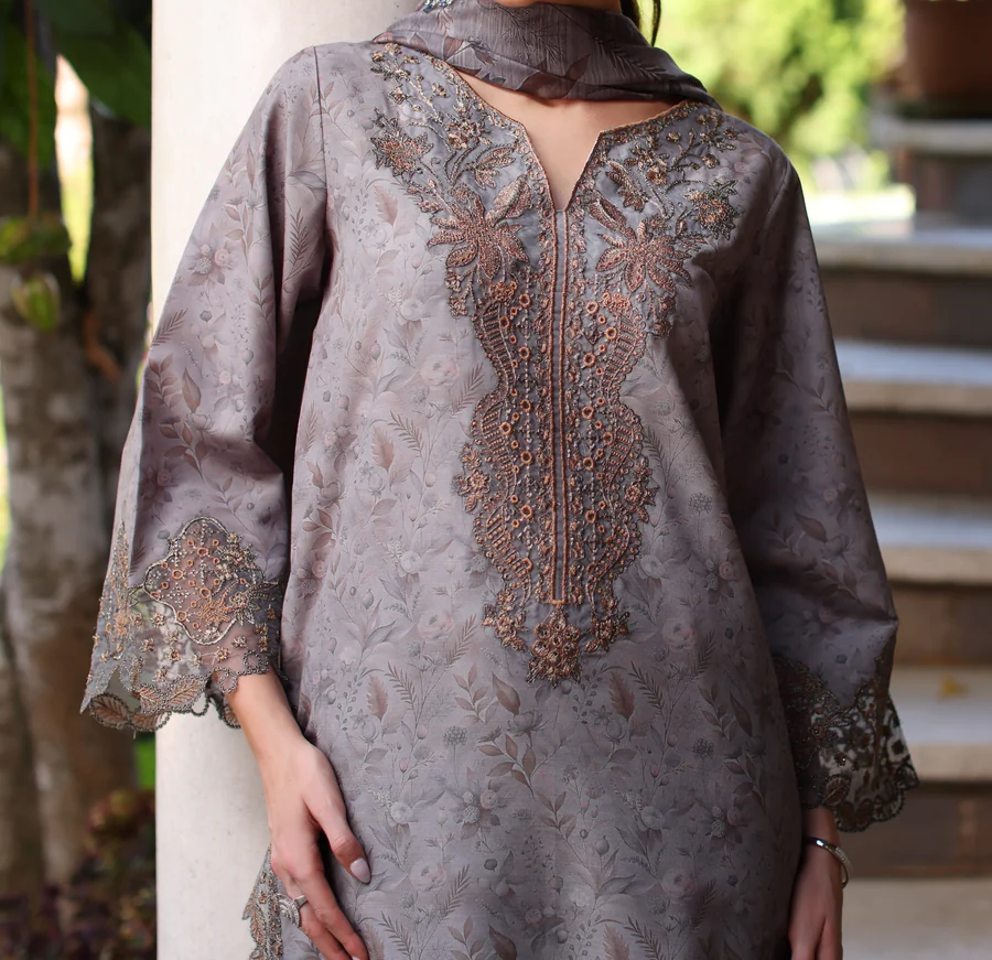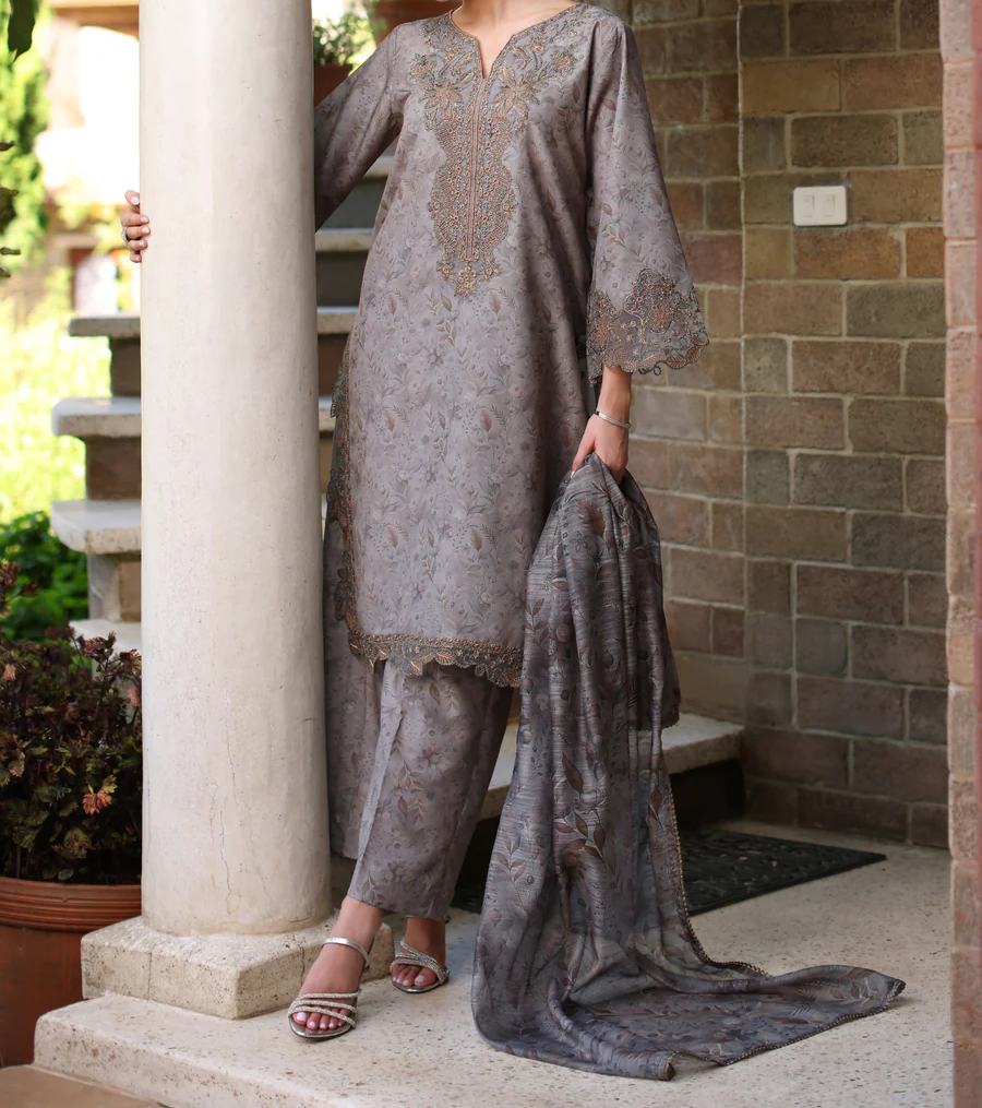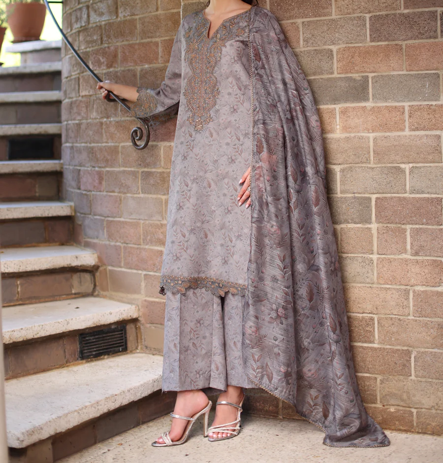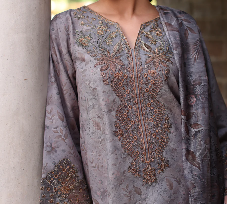 - PRINTED BLENDID KHADDAR SHIRT WITH EMBROIDERED PATCHES