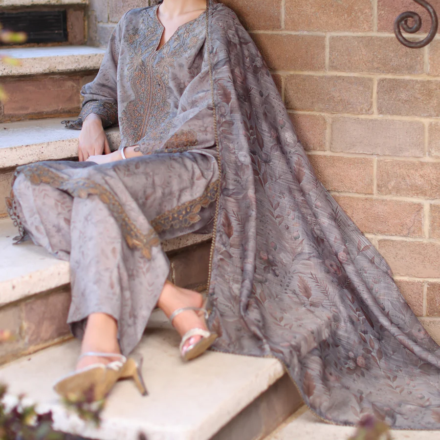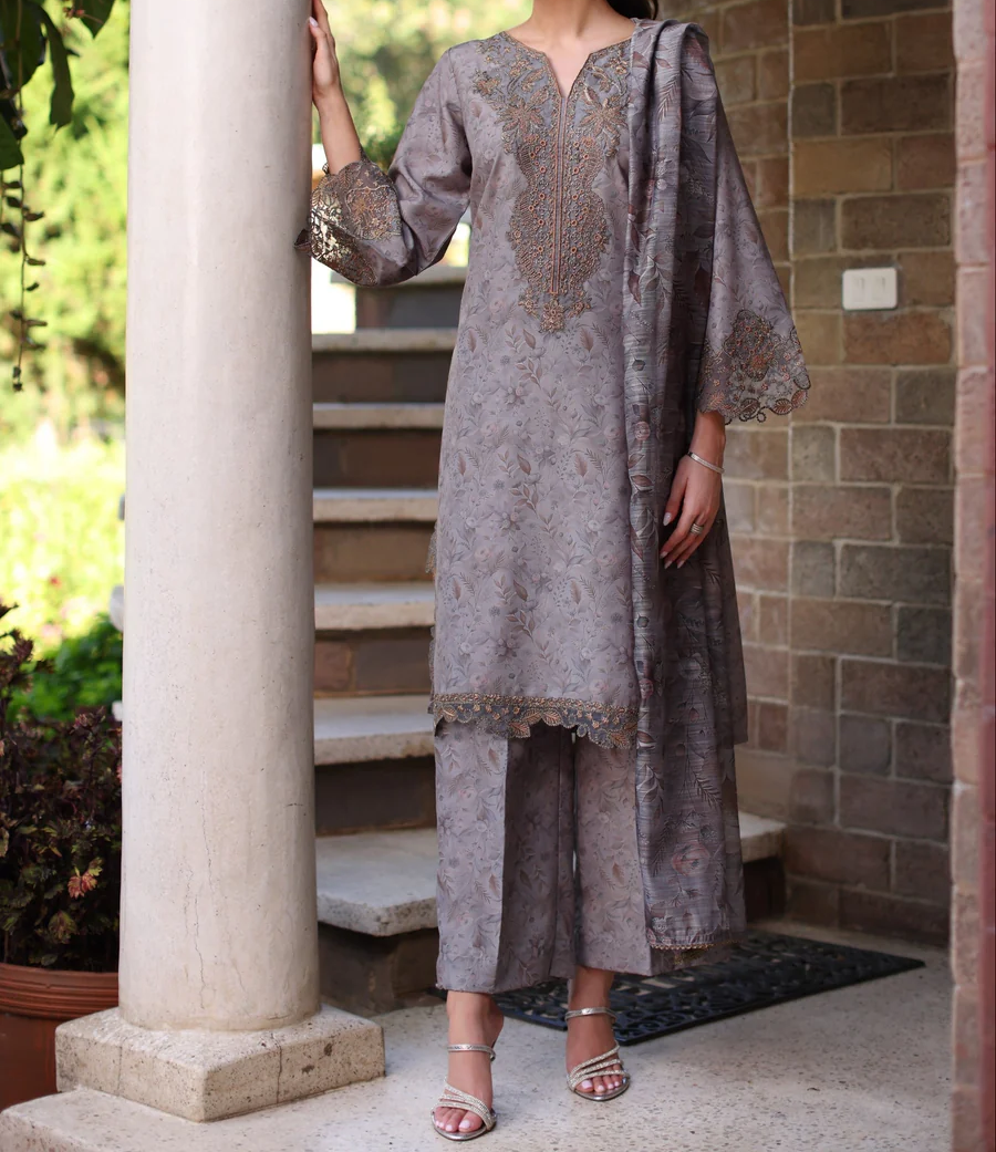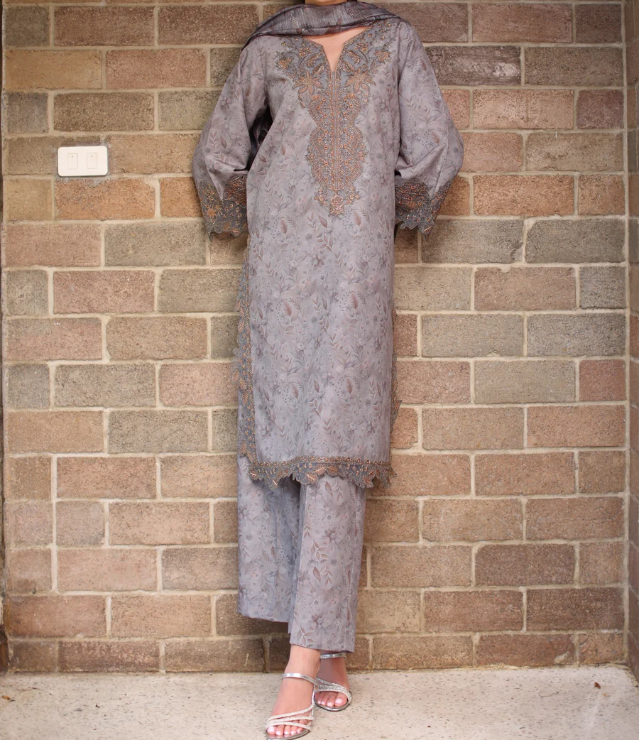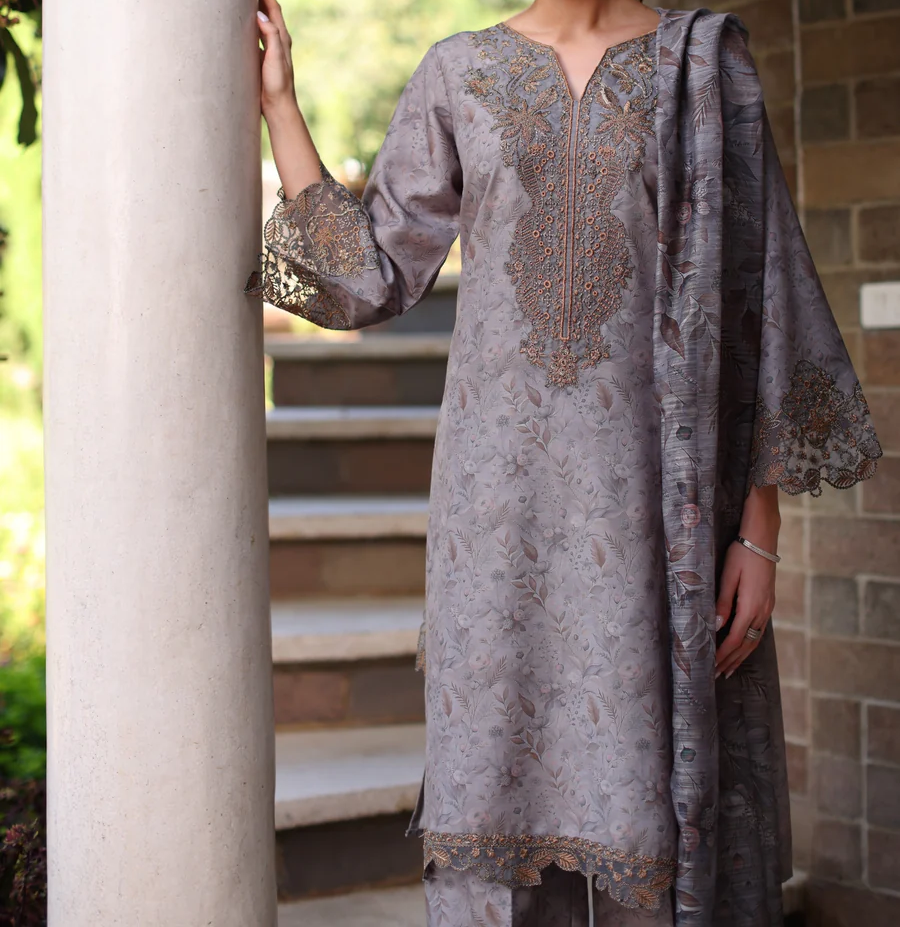 - PRINTED BLENDID KHADDAR SHIRT WITH EMBROIDERED PATCHES