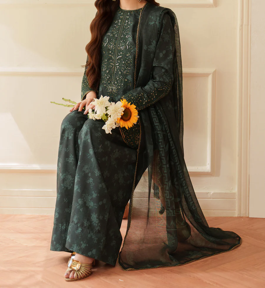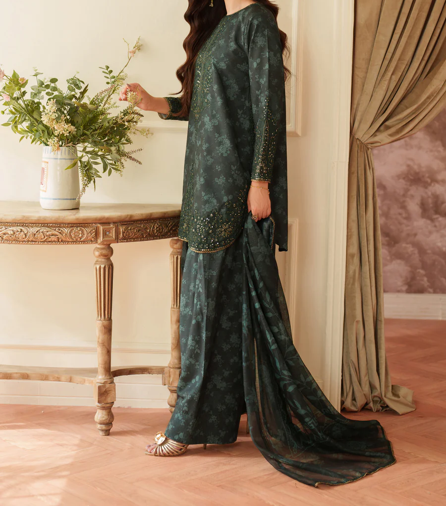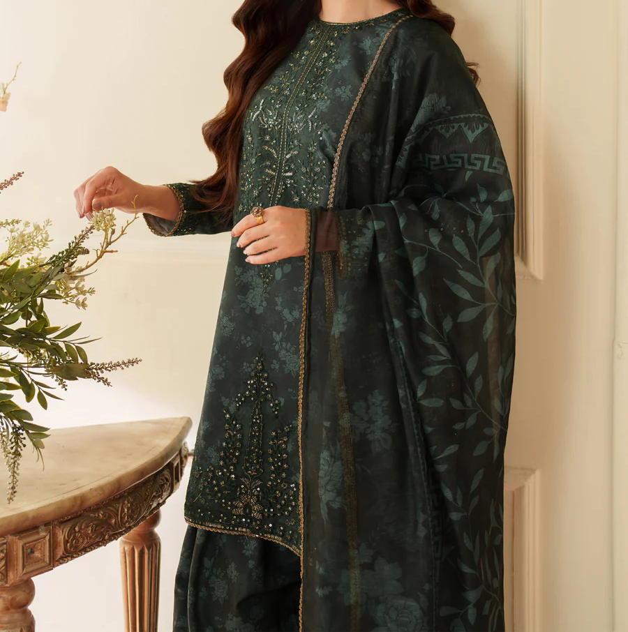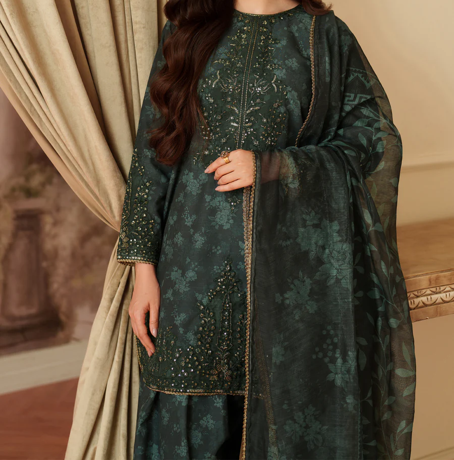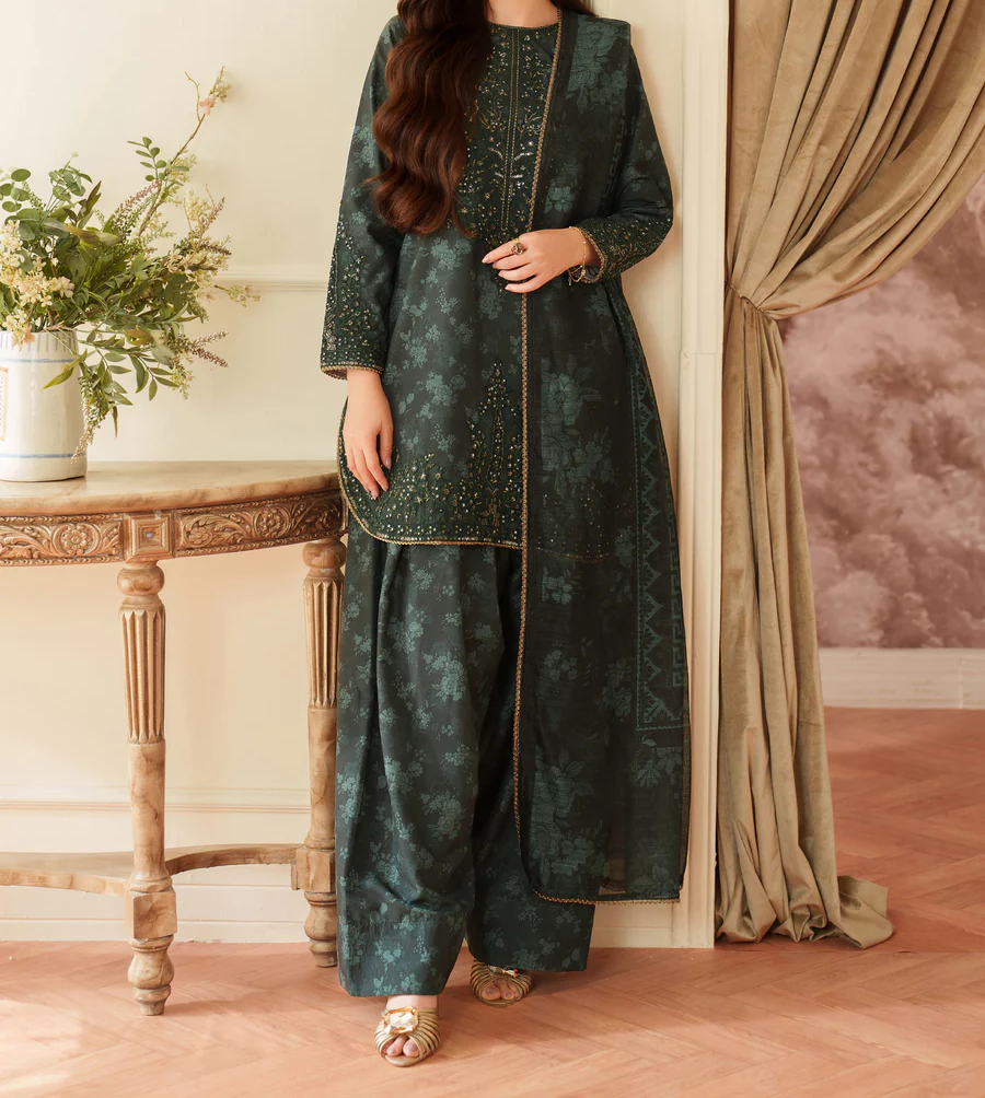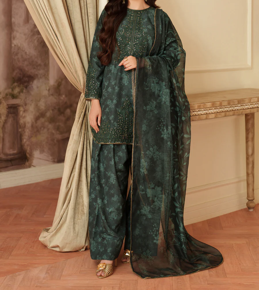 - PRINTED BLENDID KHADDAR EMBROIDERED SHIRT WITH MIRROR WORK