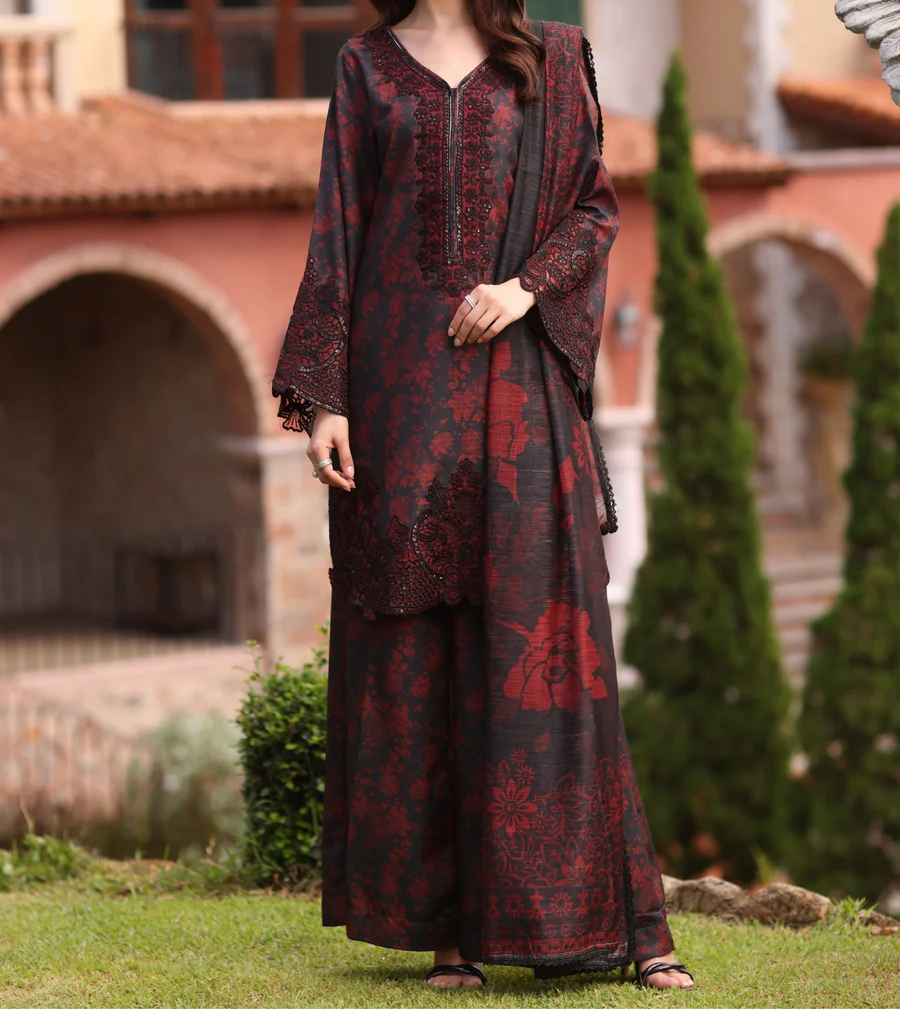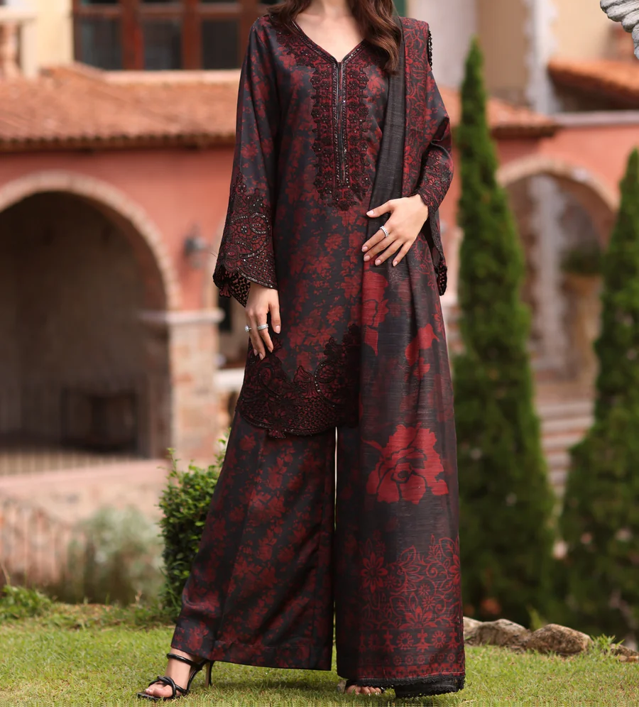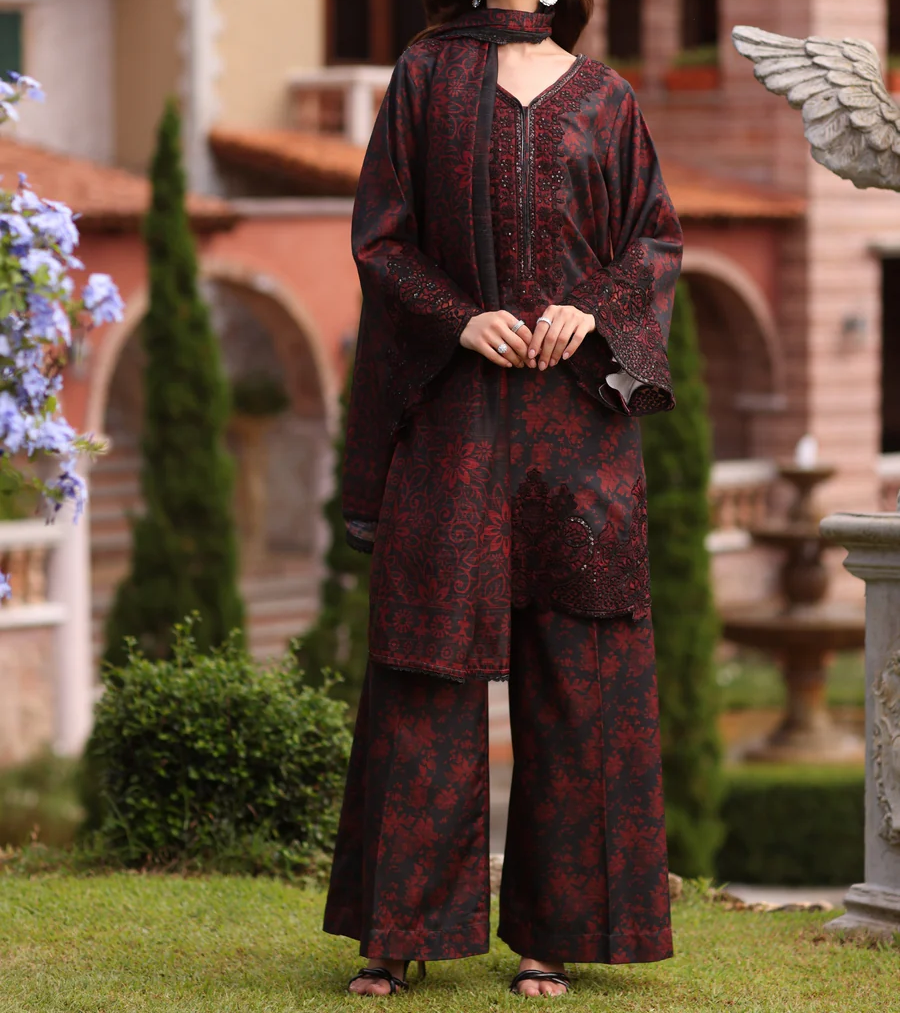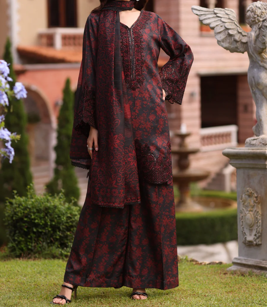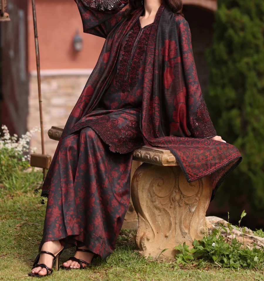 - PRINTED BLENDID KHADDAR SHIRT WITH EMBROIDERED PATCHES