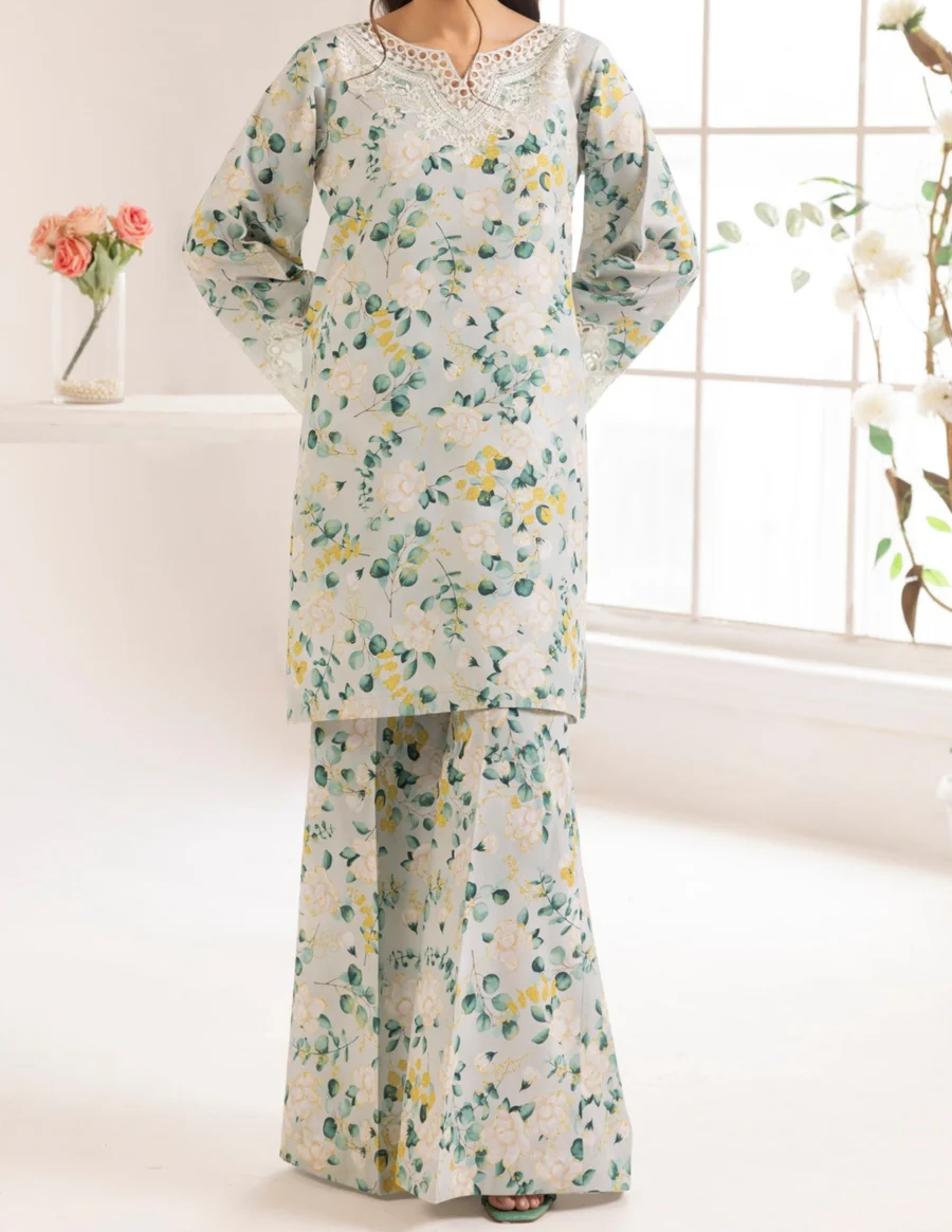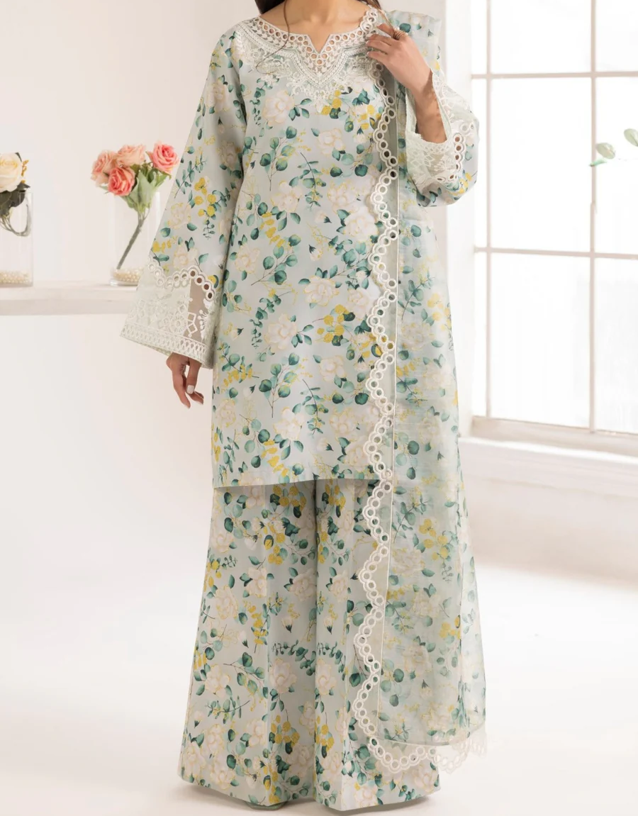 PRINTED 2 BY 2 DUPATTA FINISHED WITH ORGANZA EMBROIDERED LACE PATTI