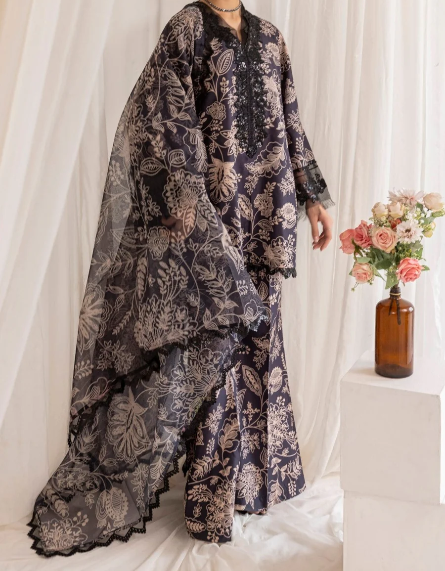 PRINTED 2 BY 2 DUPATTA FINISHED WITH ORGANZA EMBROIDERED LACE PATTI