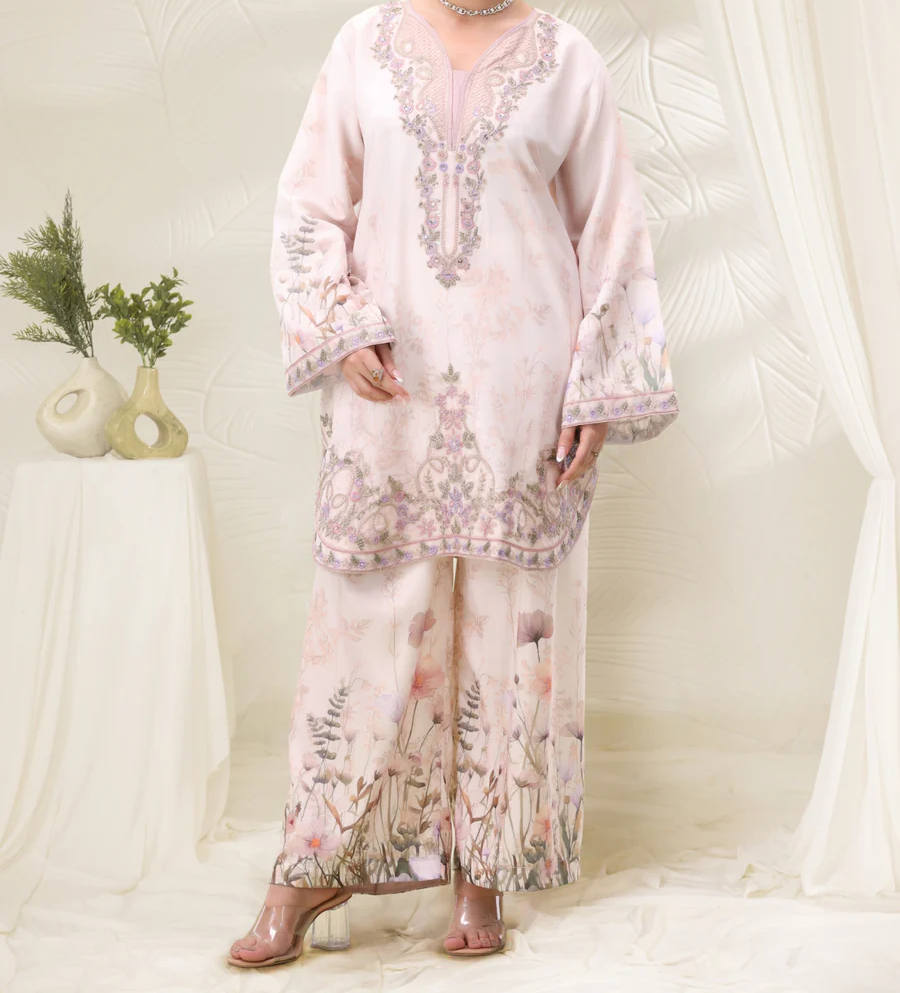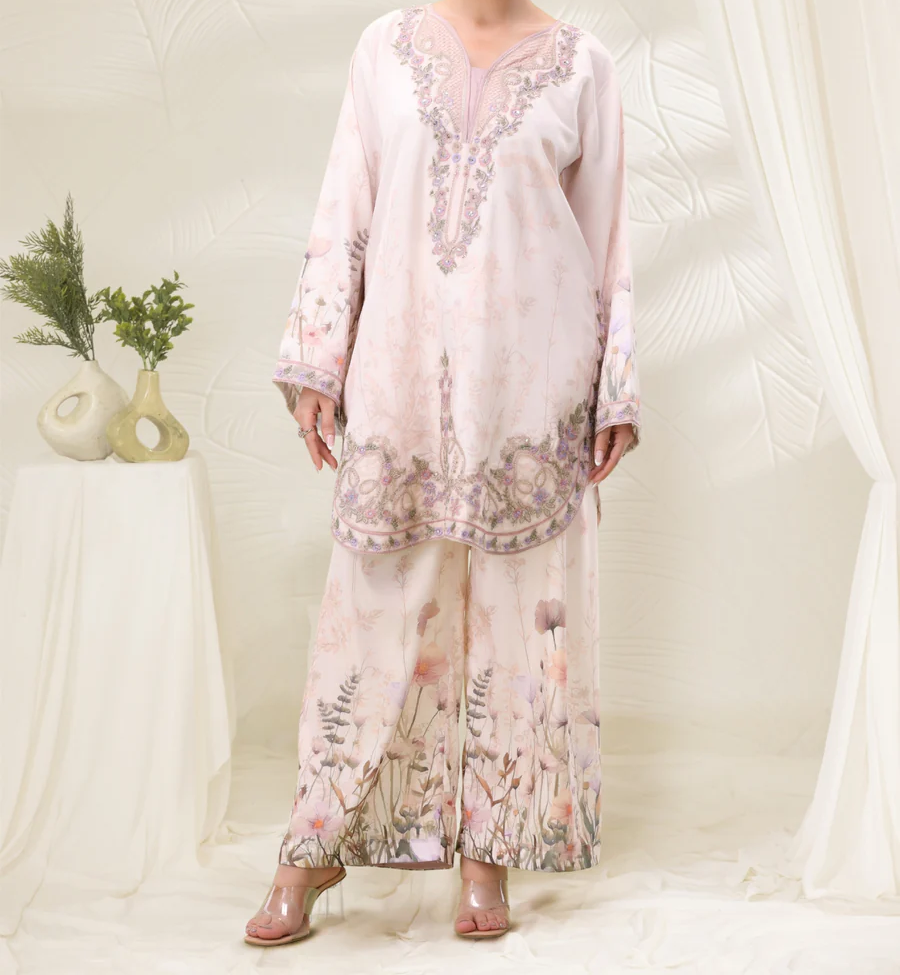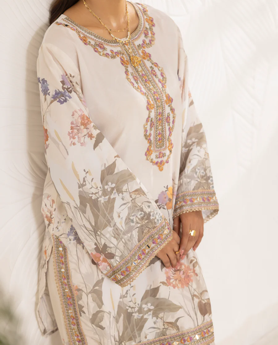 DIGITAL PRINTED SILK LAWN SHIRT WITH ORGANZA EMBROIDERED PATCH